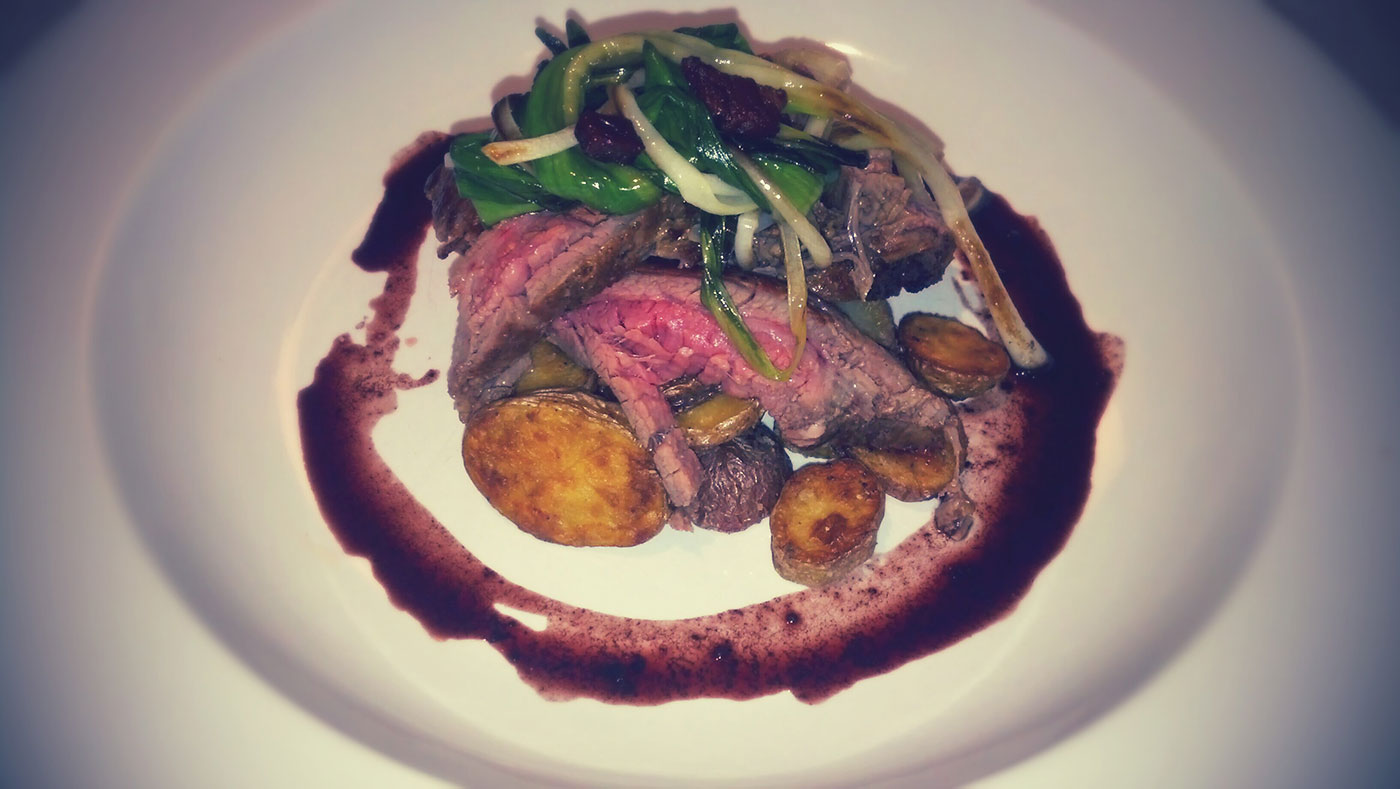 Funny, I made the recipe you are reading first back in the spring, but since then I recreated (and posted) a similar recipe (Flank Steak, Roasted Sage and Duck Fat Potatoes, Sautéed Kale and Blueberry Balsamic Jus).