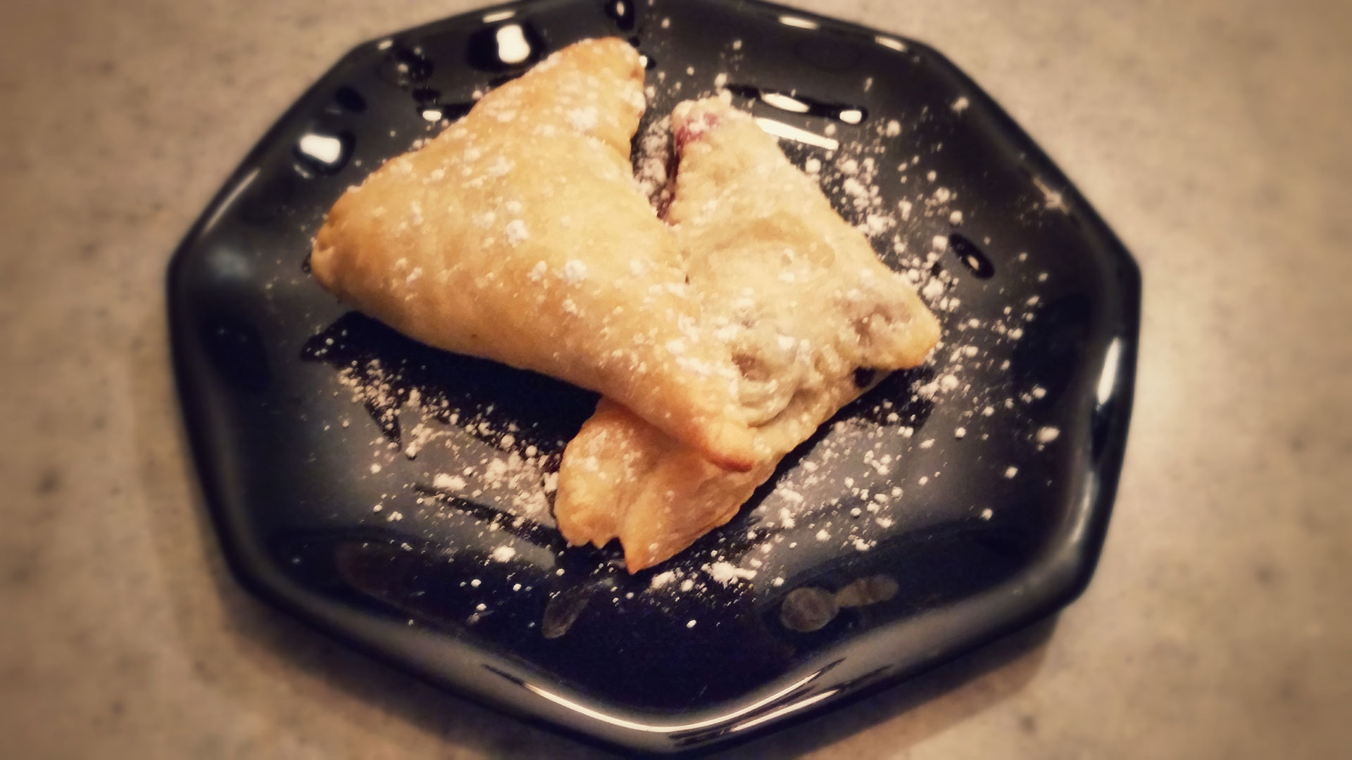 Eating at a local tapas spot (The Cazbah), we had a dessert. The chef of the restaurant was friends with one of our group. He came out to chat for a minute and I asked him about the dessert we had just eaten. He confirmed that basically all that was in them was good dough, blueberries and white chocolate. I decided to use puff pastry in mine.