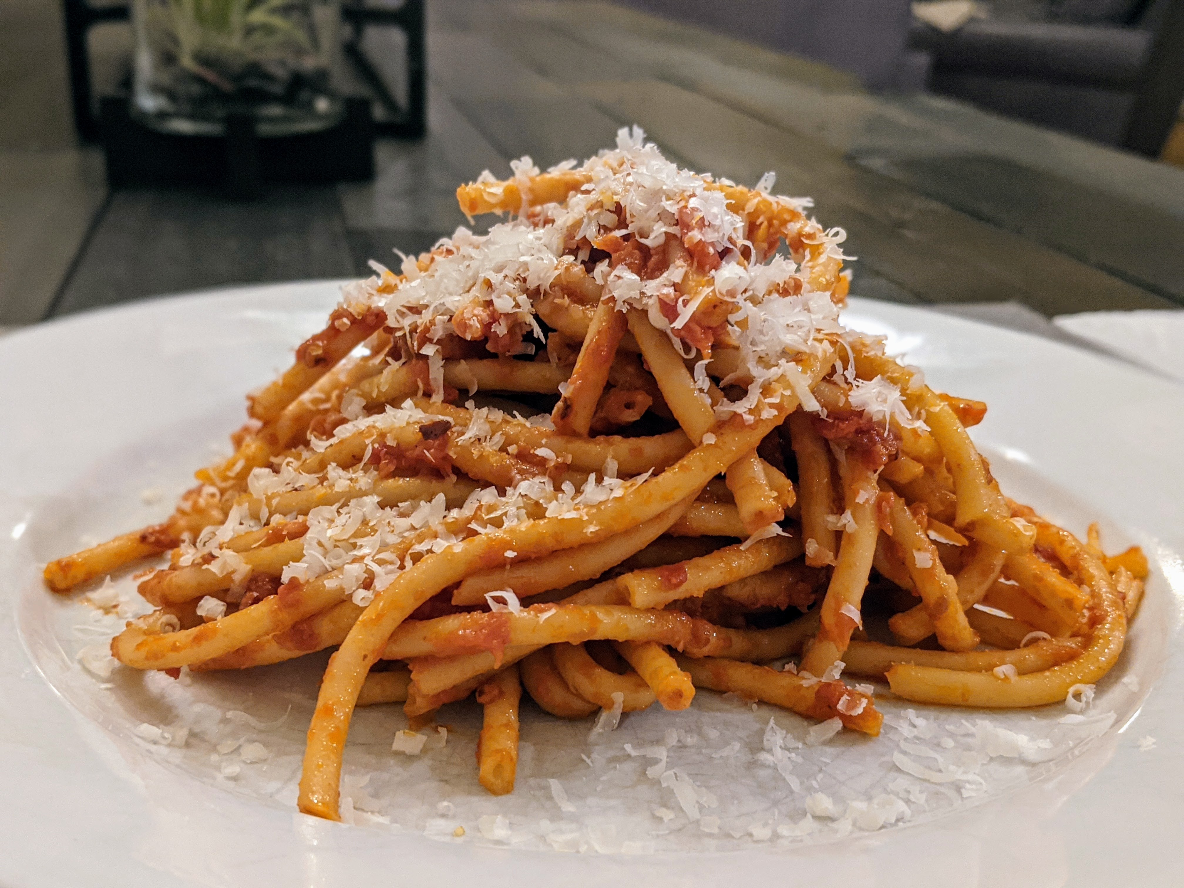 A week or so ago I posted a super delicious and very easy recipe for an authentic Italian dish, Spaghetti al Pomodoro. This time I’m posting my absolute favorite super simple and very easy authentic Italian recipe, Bucatini all’Amatriciana (pronounced aa·muh·tree·chaa·nuh).