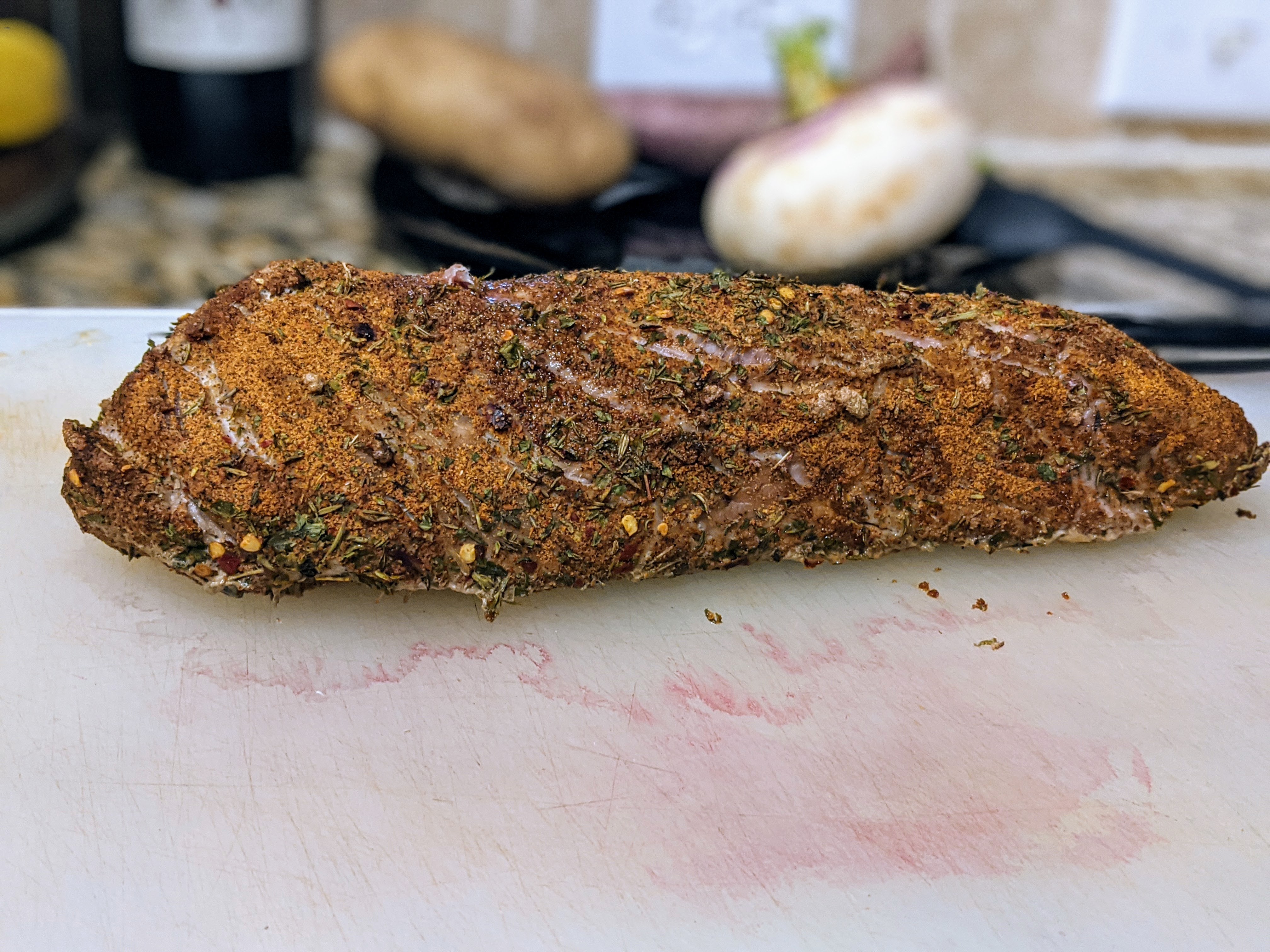 - Place all the veg on a sheet pan and place on the bottom rack of the oven while the pork is cooking.