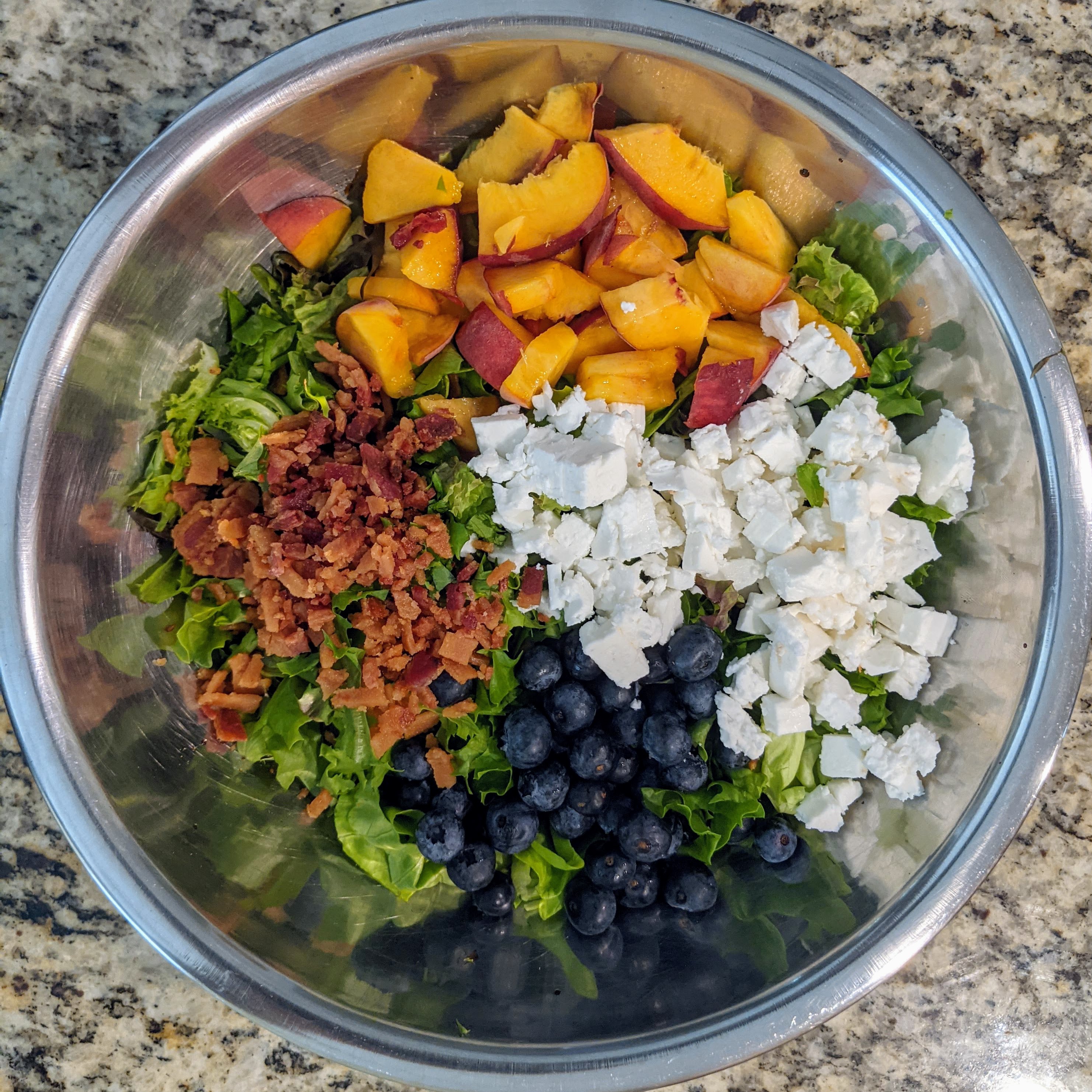 Directions for Peach, Blueberry, Feta and Bacon Salad