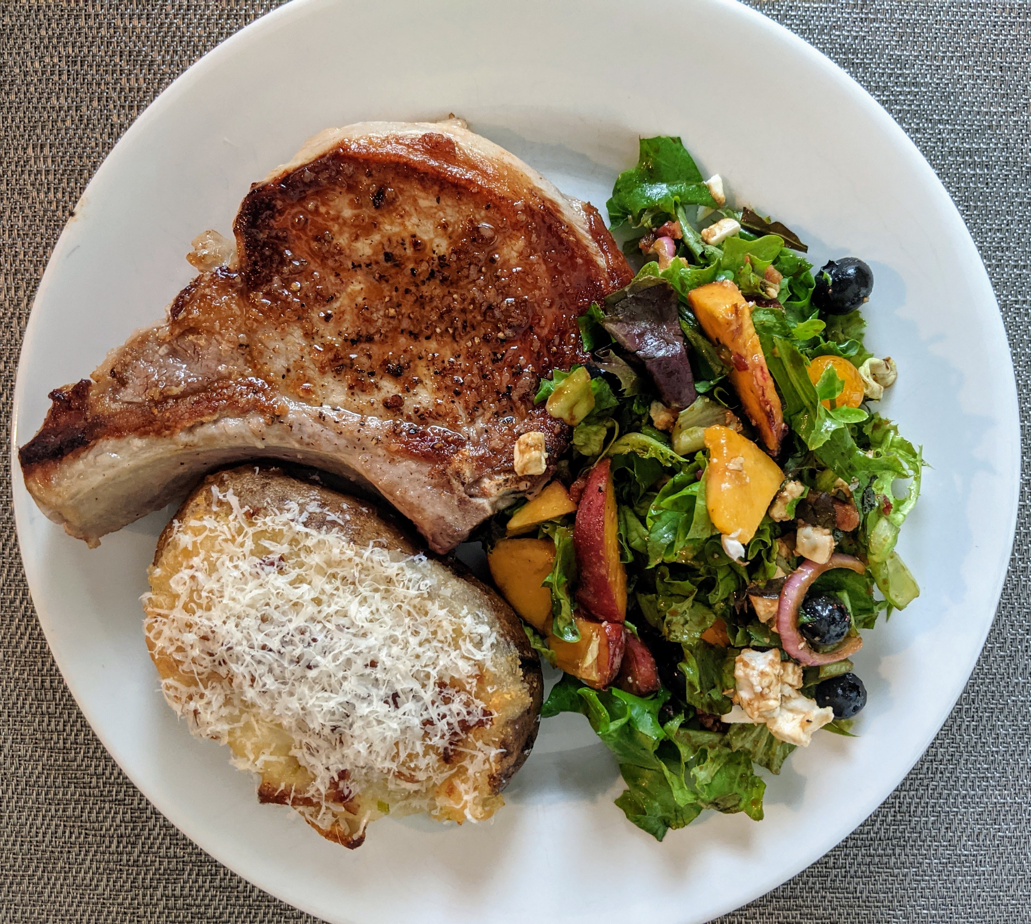 - We served with pork chops and twice baked potatoes but this salad is great as a stand alone for a light lunch or dinner. Enjoy.