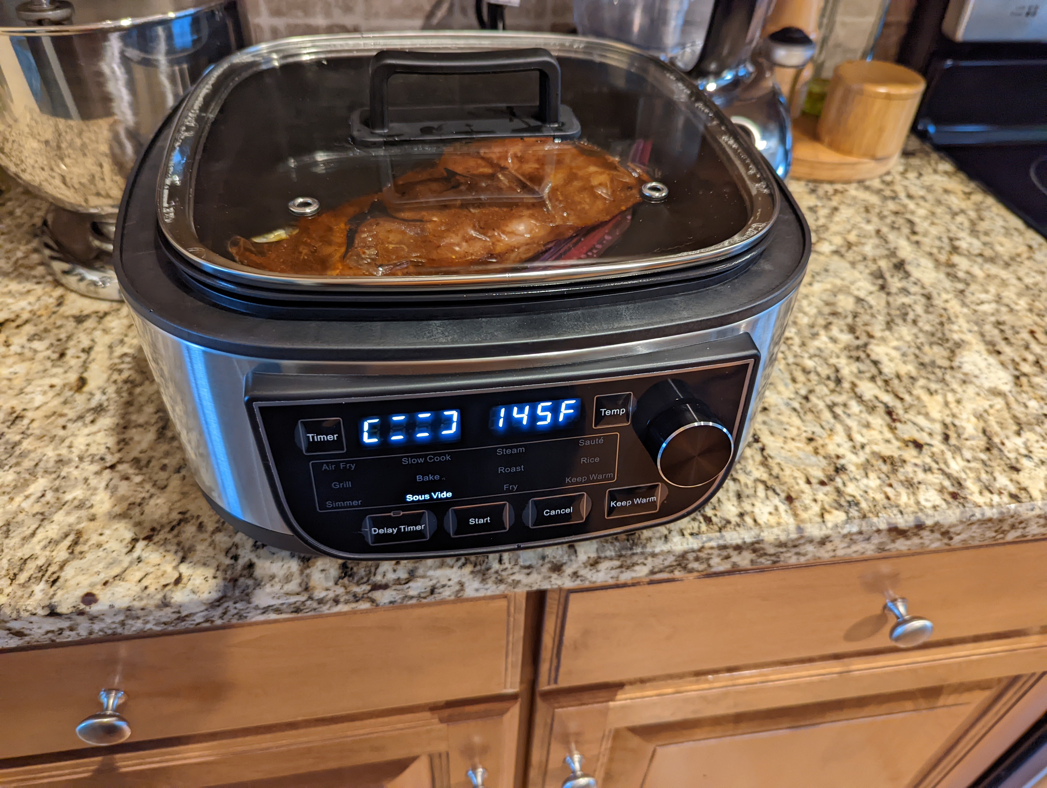 I again made tweaks from the original two posts, the biggest difference was I got a sous vide / air fryer for Christmas. If you are reading this and don’t have a sous vide machine, take a look at the two posts linked above to learn how to do this with out the equipment. I CAN be done without, but I have to admit, after years of doing this meal, I have never had more moist, tender turkey breast than I had this year with the sous vide machine. It was ridiculous. If you are on the fence about purchasing a sous vide, I would highly recommend it. Mine is a combo, air fryer, crockpot, sous vide, etc.