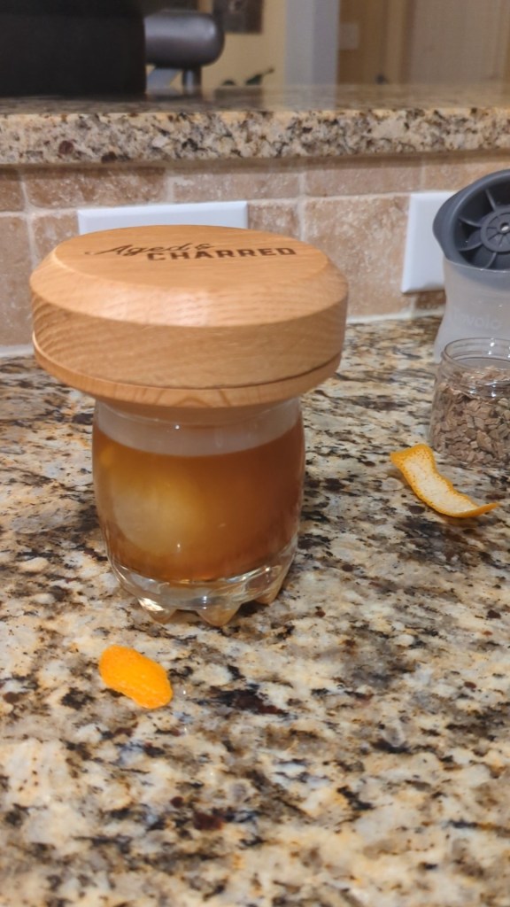 Traditionally, sugar cubes are added but the bourbon barrel aged maple syrup not only sounds impressive, it adds a little more then regular sugar would. The walnut bitters are also not traditional, but again, they add something extra.