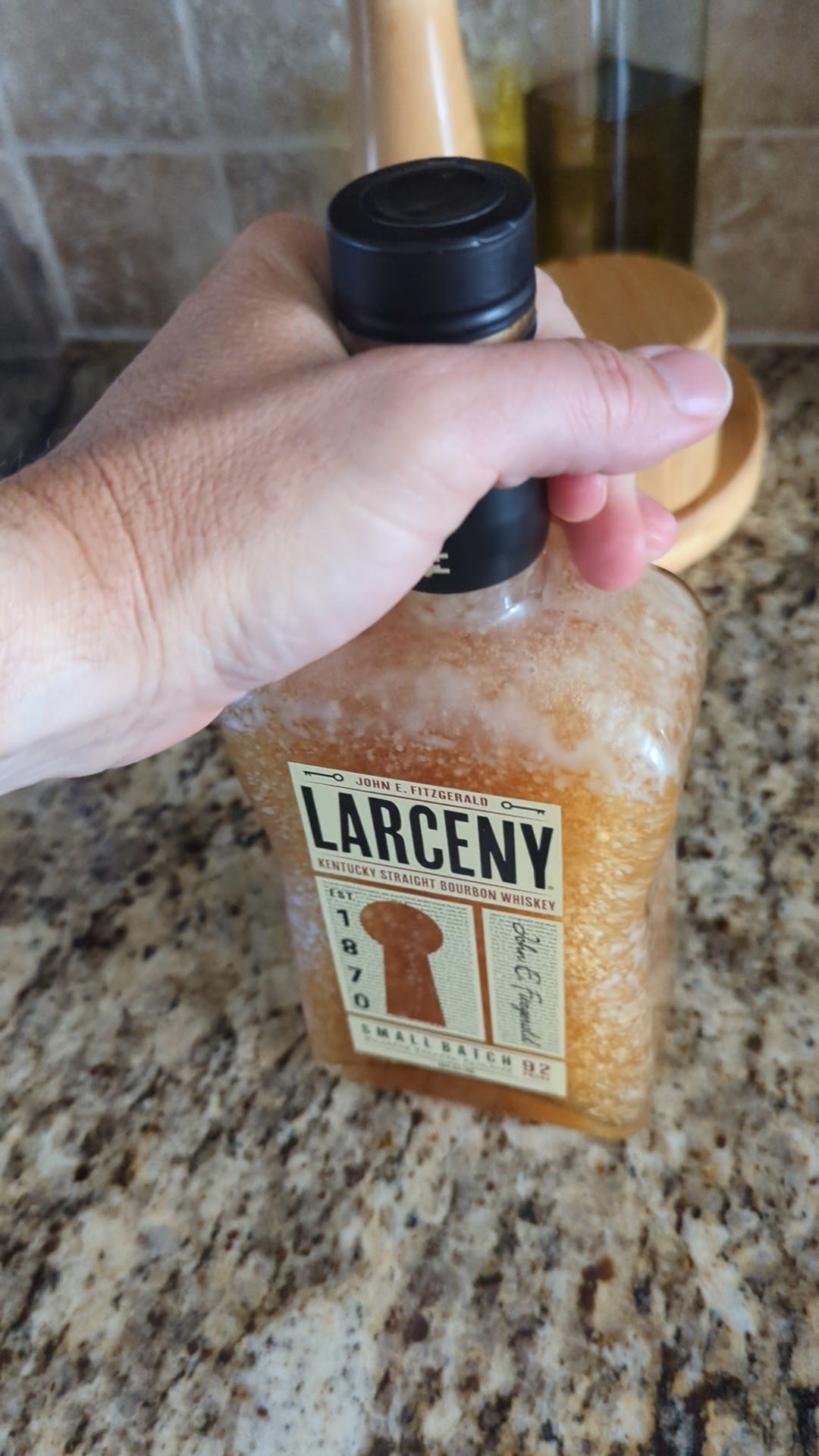 I chose Larceny Bourbon for this but in retrospect I should have chosen something with more oomph. Nothing wrong with Larceny, just wanted more bite. Also, next time I’ll be making the 1.75l version, because the 750ml won’t last long.