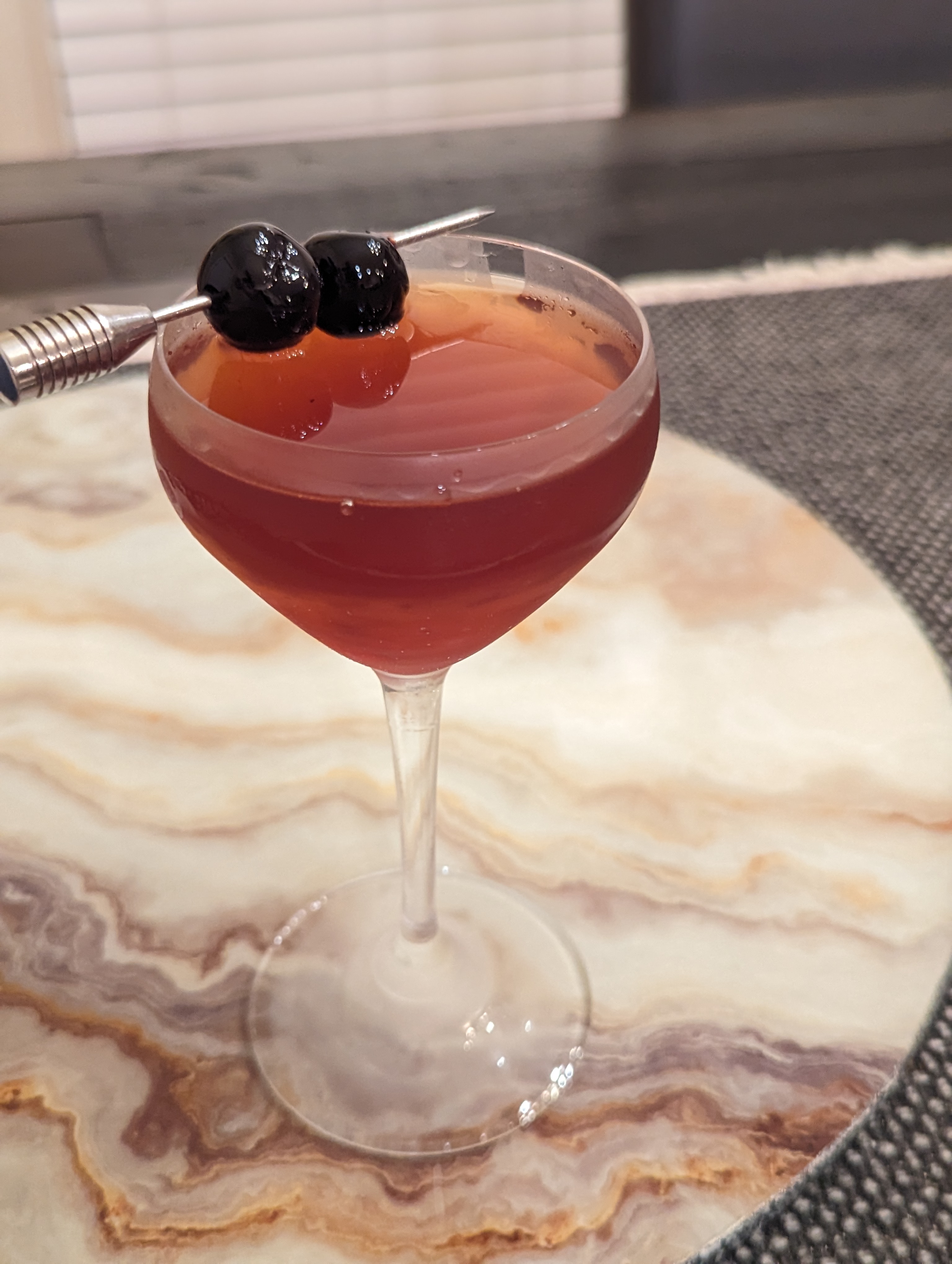 - Garnish with Luxardo cherries.