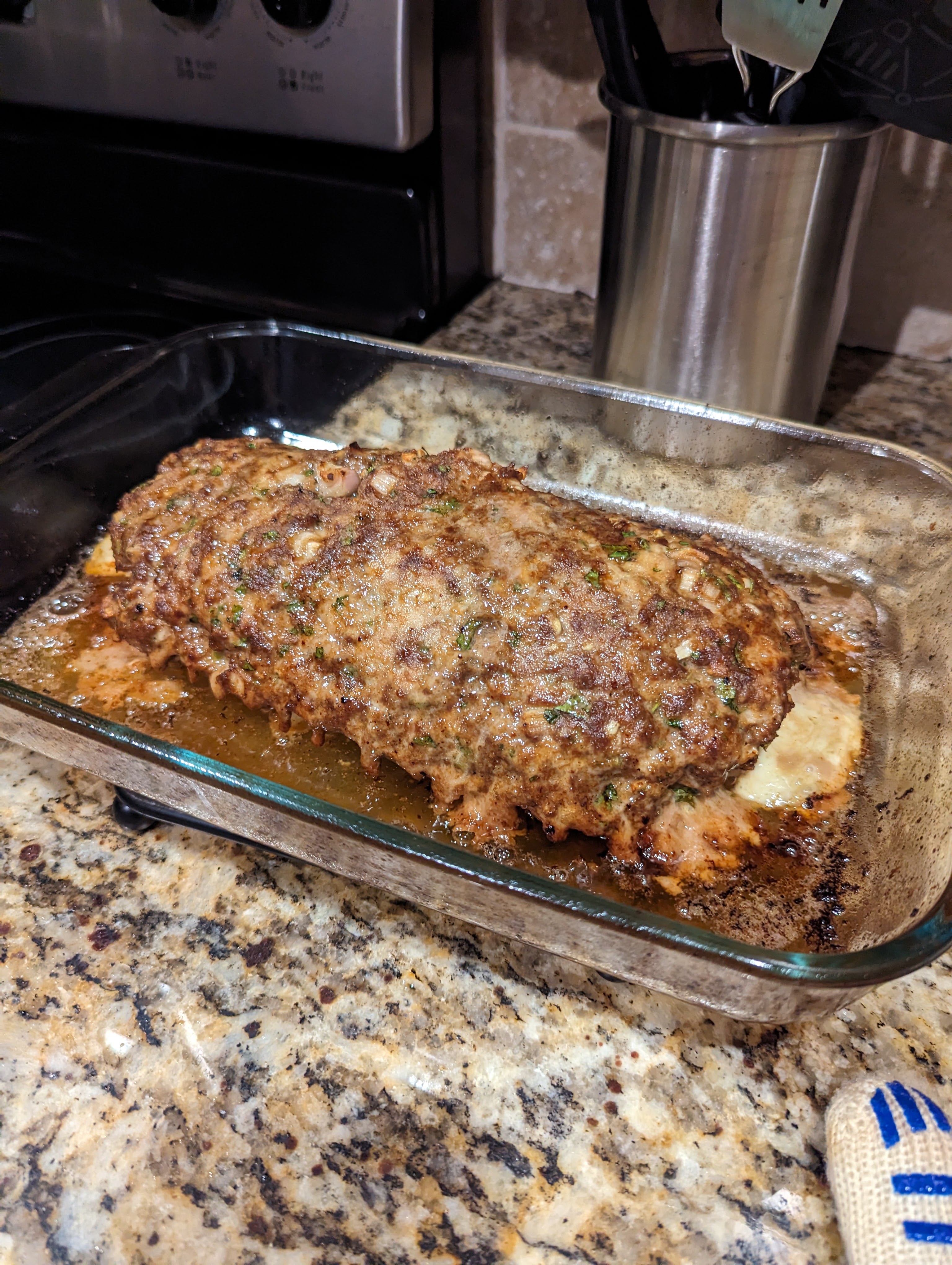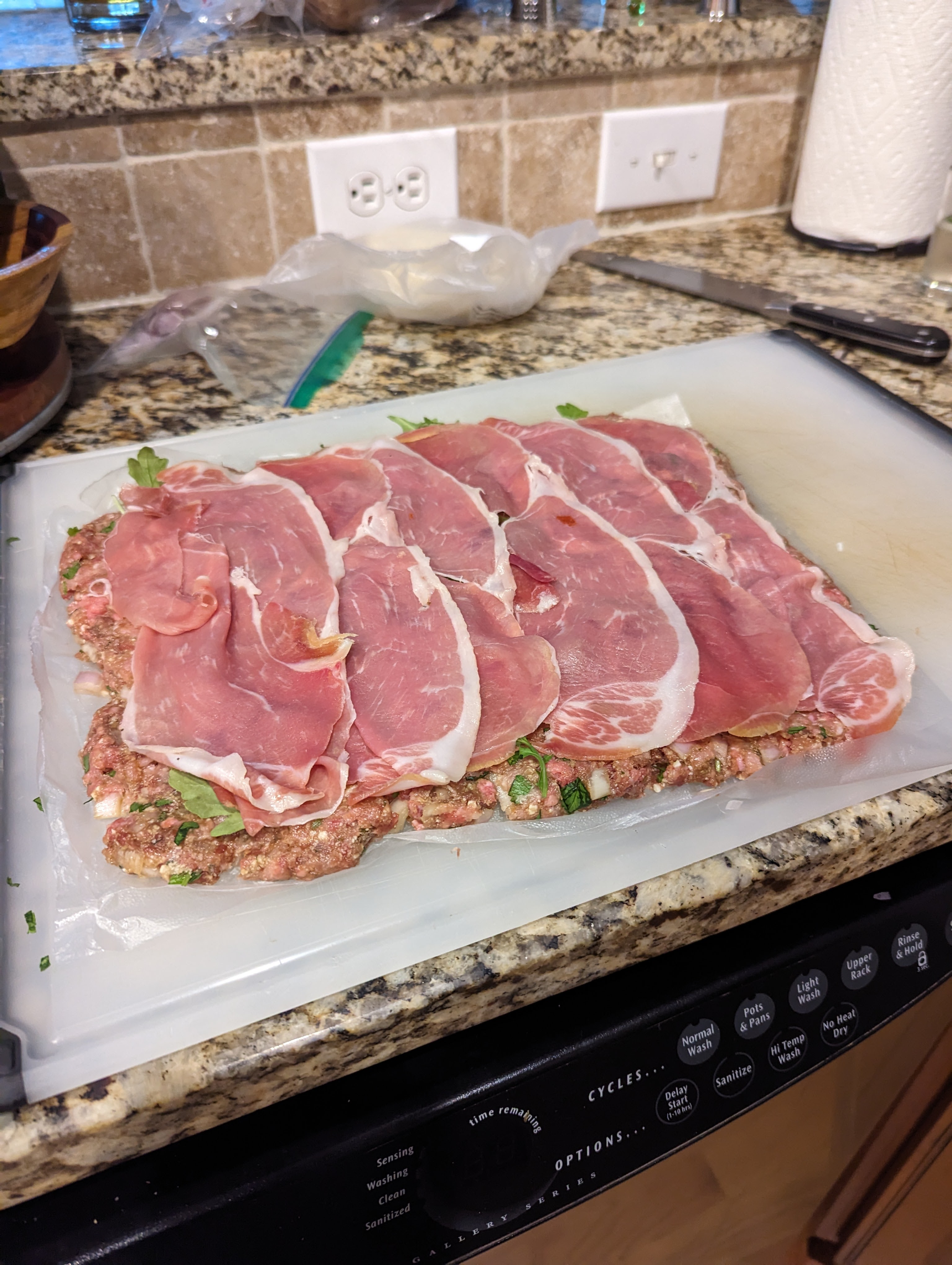 When my wife and I first met, she was insistent that she did NOT like loaves of meat. I’m sure it was a childhood aversion. Many of us probably had dry and bland meatloaf. This is NOT that. Anytime you can add provolone and prosciutto to anything, it’s probably going to be good.