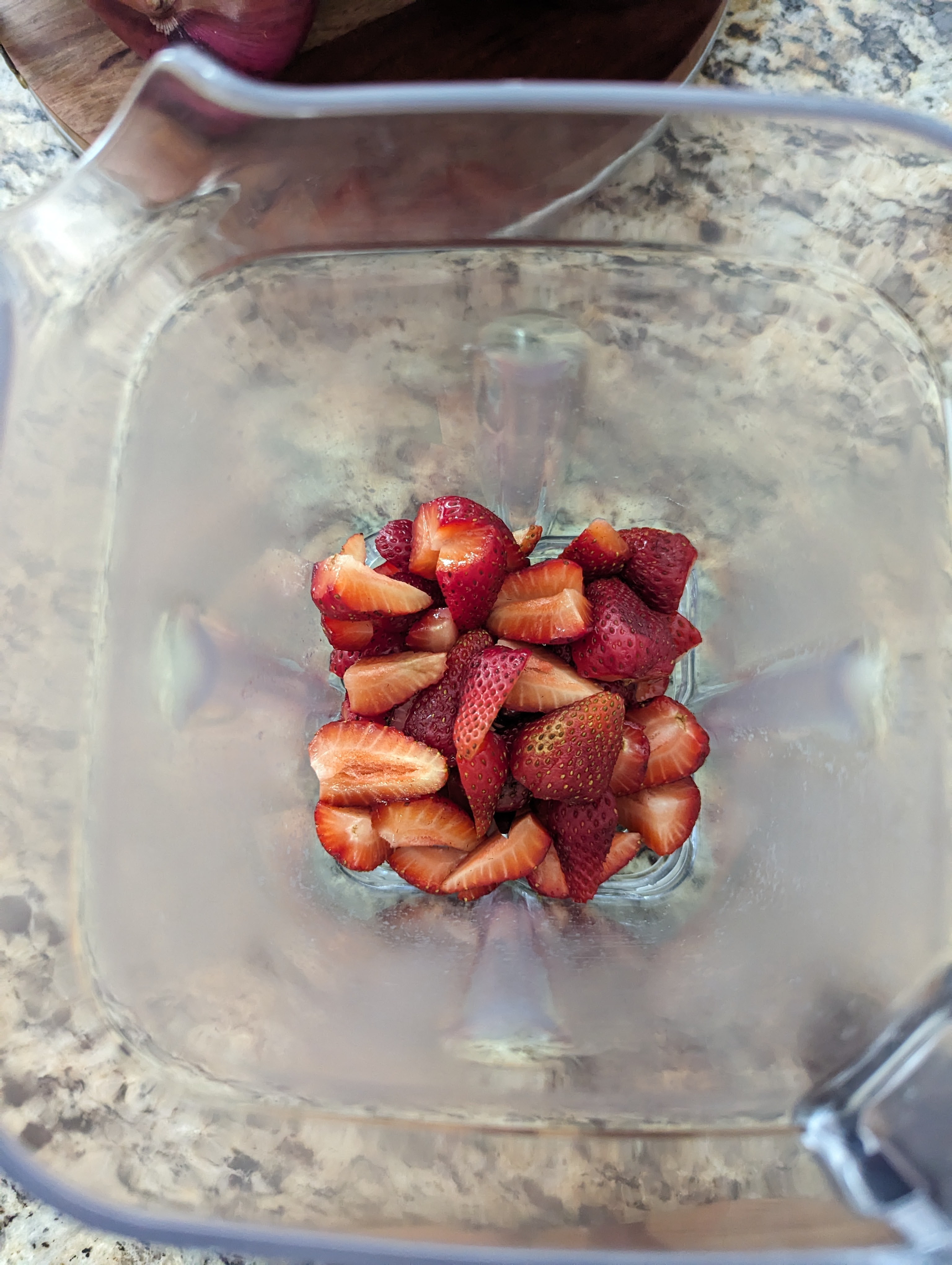 - Add the the remaining strawberries to a blender and process until very smooth.