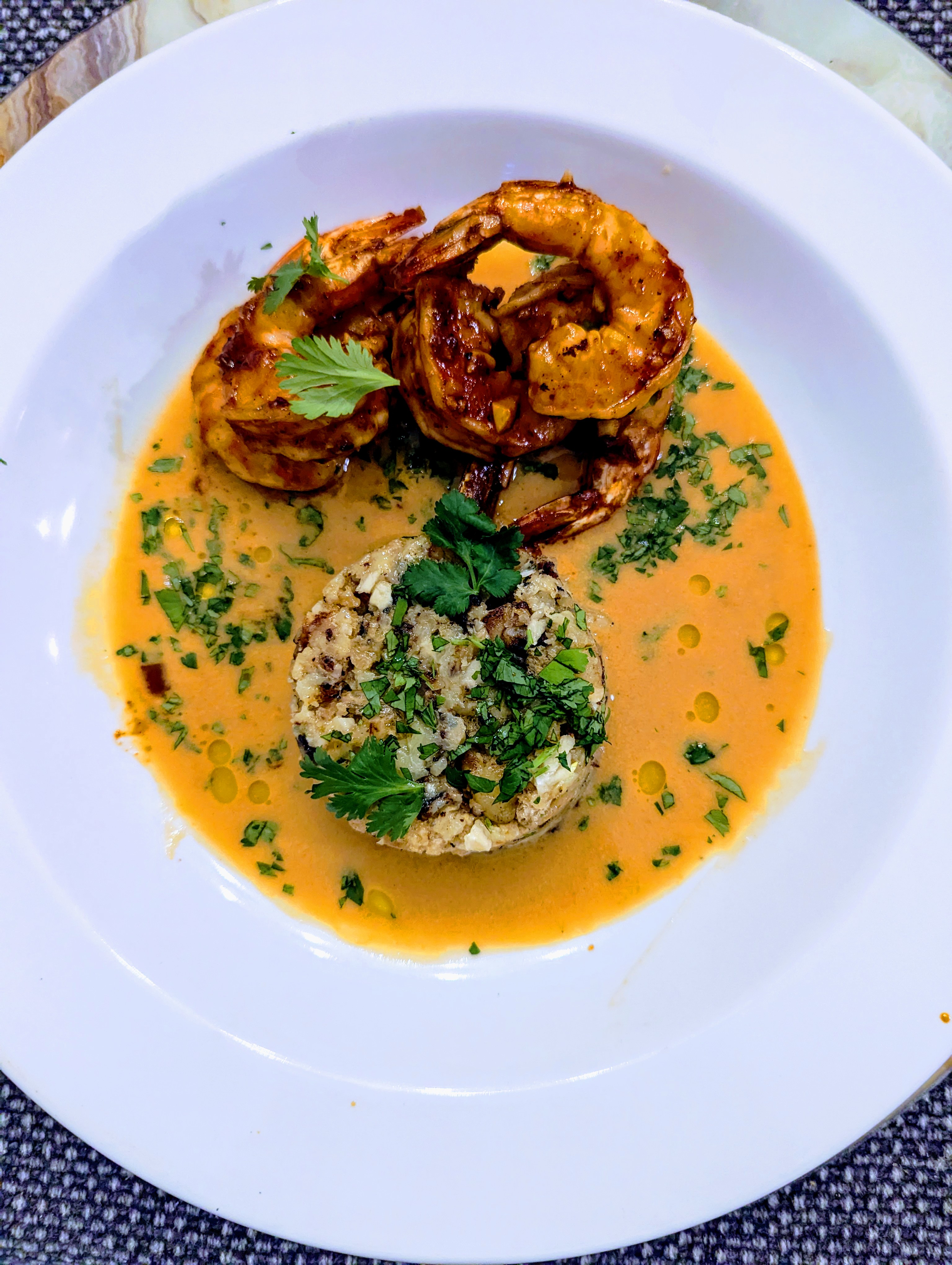 Here is a copycat recipe from one of our favorite local restaurants, Mr. Crisp (Check out our: Review: Mr. Crisp in Greenville, South Carolina). See the IG post and menu description below. While I’ve never had this meal at the restaurant (yet), I was looking for inspiration as I needed to use some local shrimp. It could not have turned out better. I don’t have the restaurant’s recipe, here is what I came up with.