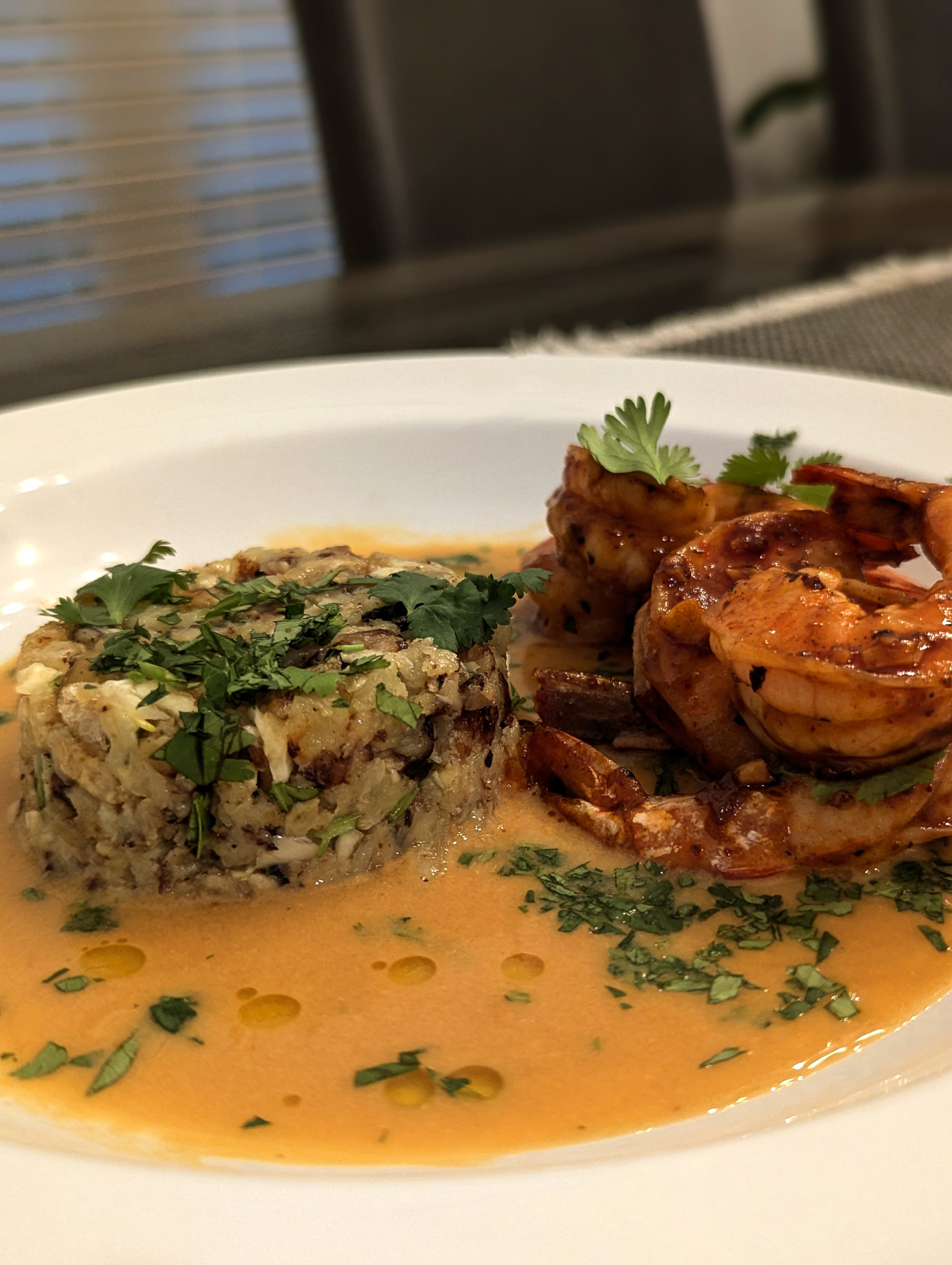 - Add adobo shrimp, garnish with minced cilantro and drizzle with olive oil.