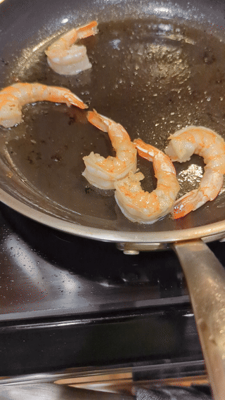 - Add shrimp and sear on both sides but don’t cook through.