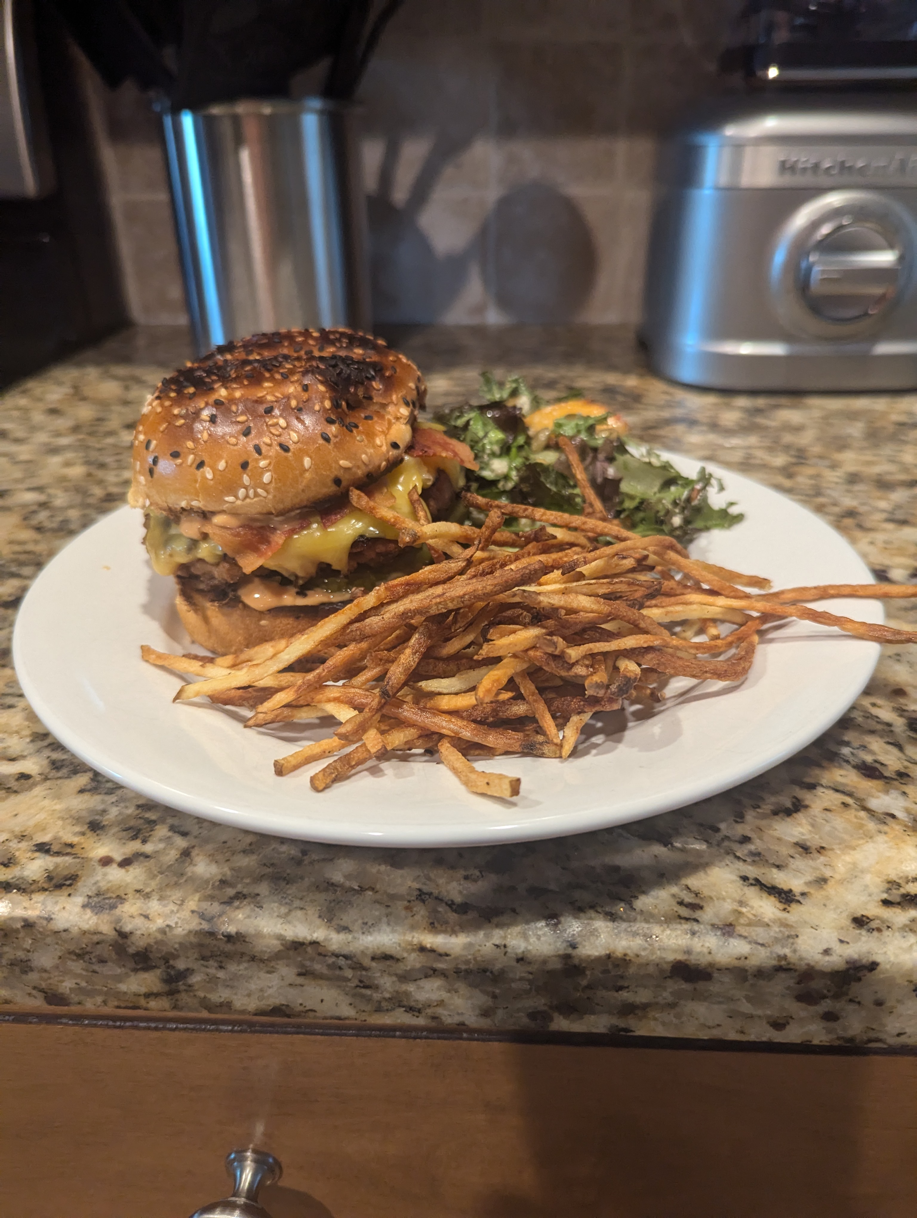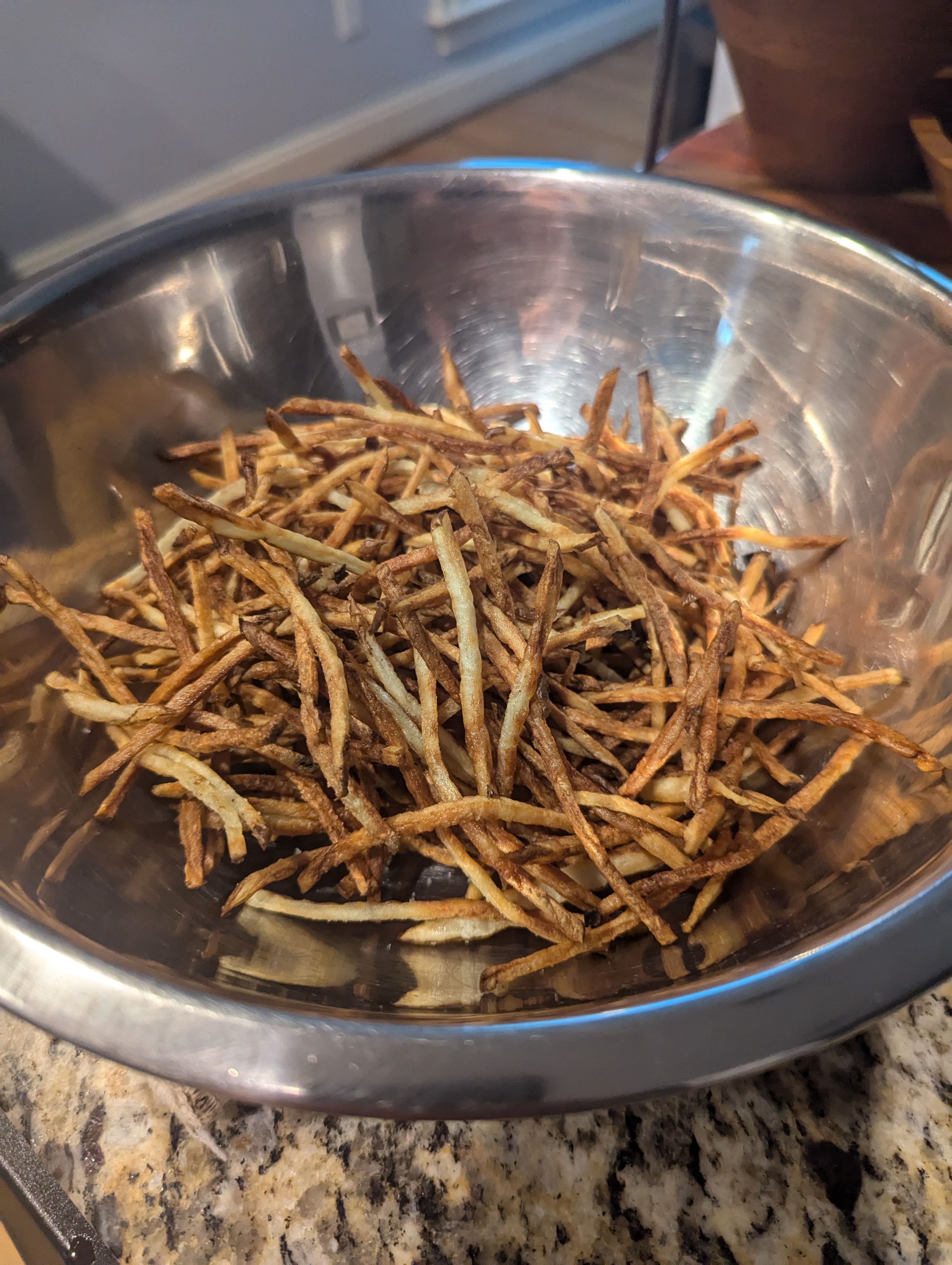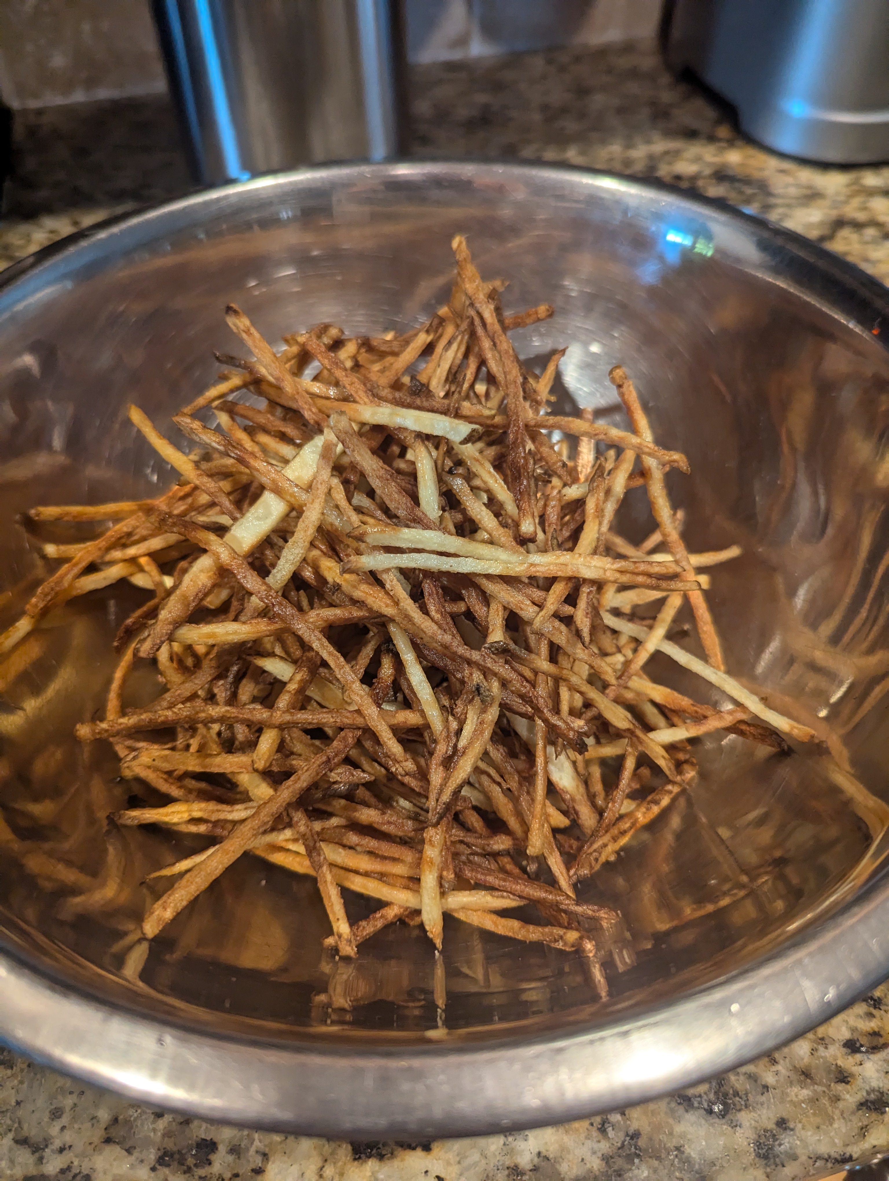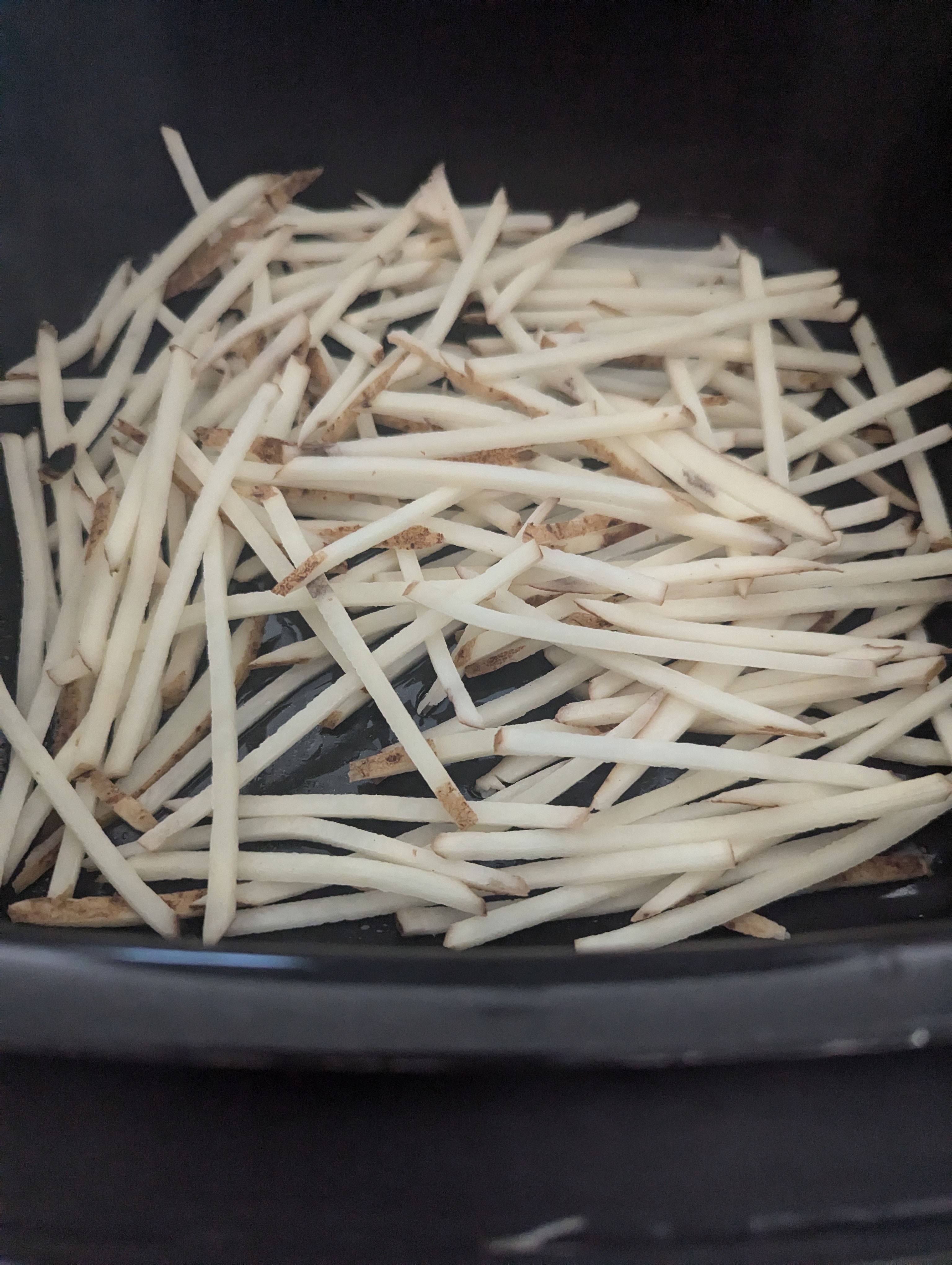 I’ve been making different versions of fries that are not fried. I started baking them which was fine. Then I got an air fryer which made a big difference. I’m posting the most impressive of the air fried versions. Skinny fries are by them selves pretty awesome. When you add duck fat and truffle sea salt, they go over the top.