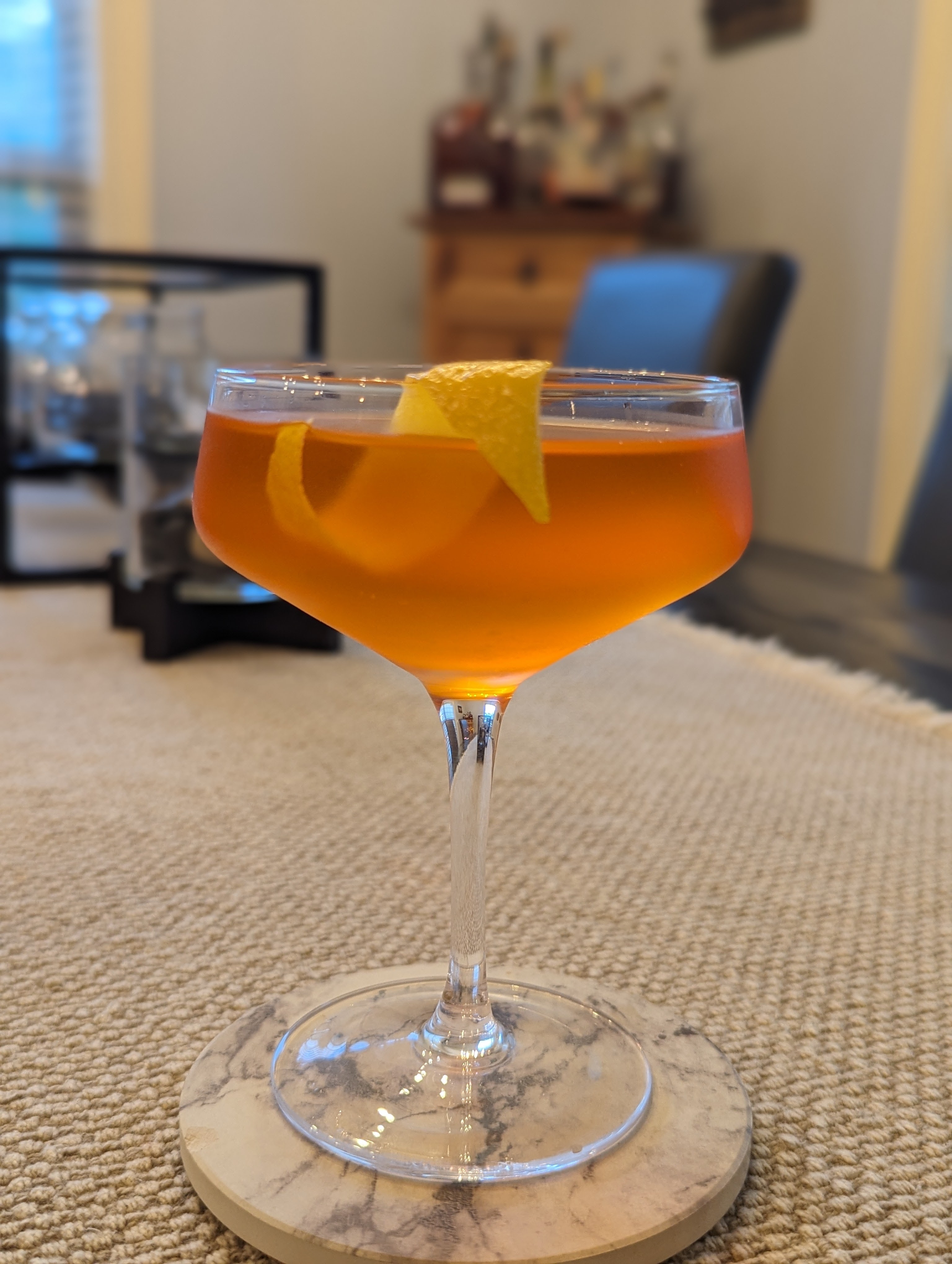 - Express then garnish with a lemon peel twist.