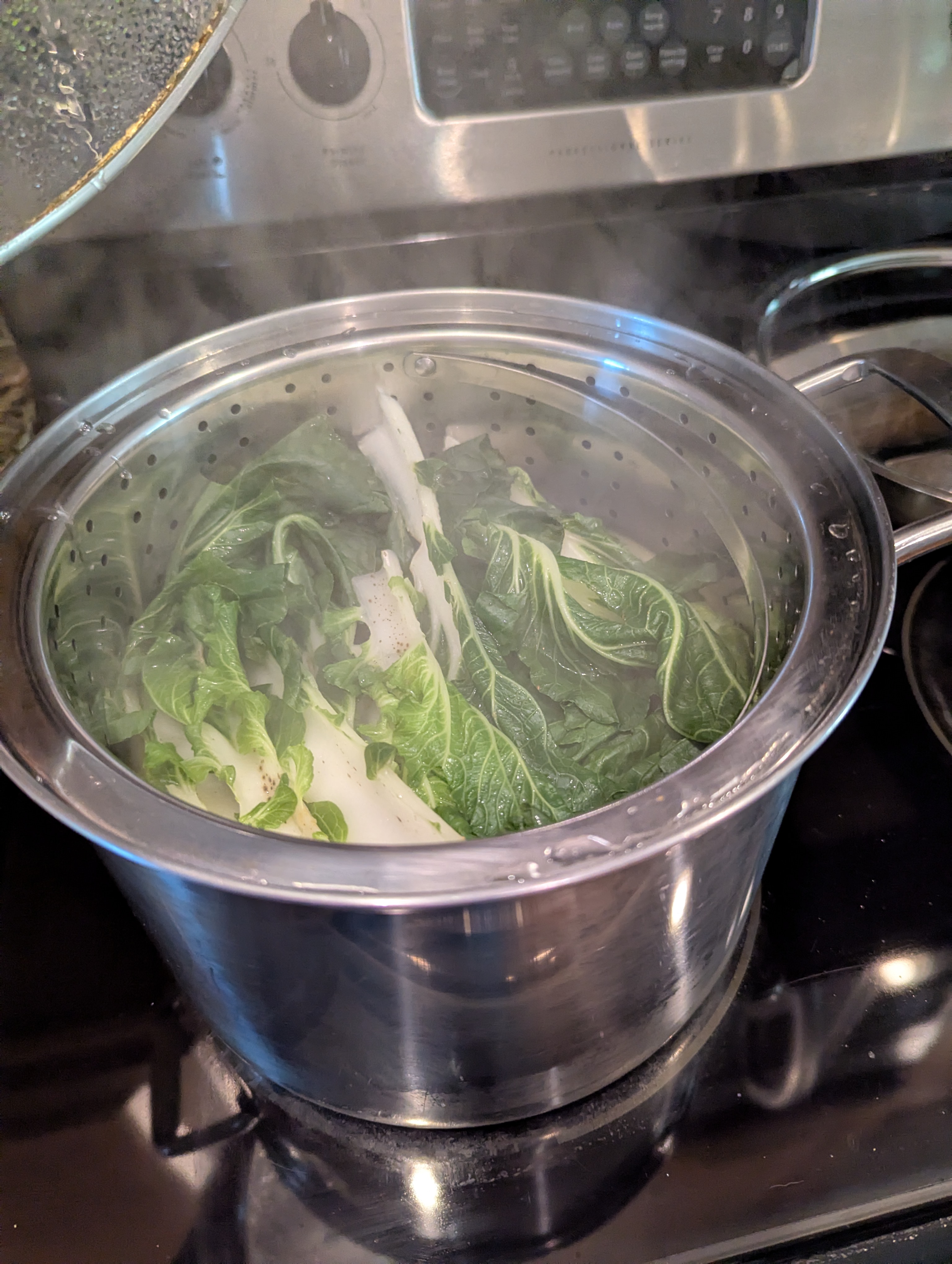- Add the steamer with the bok choy. Cover and allow to steam until just cooked through.