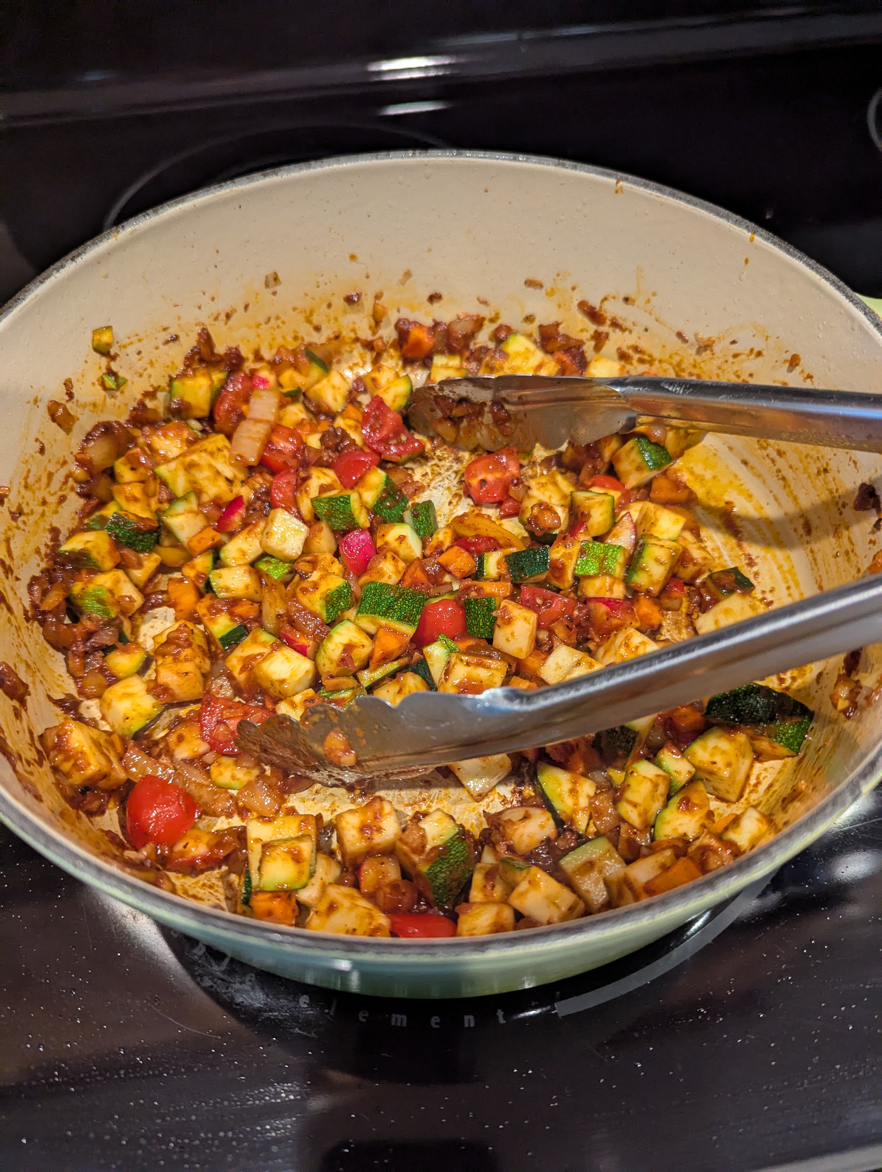 - Add carrots, zucchini, and bell pepper. Cook until just softened, about 5 minutes.