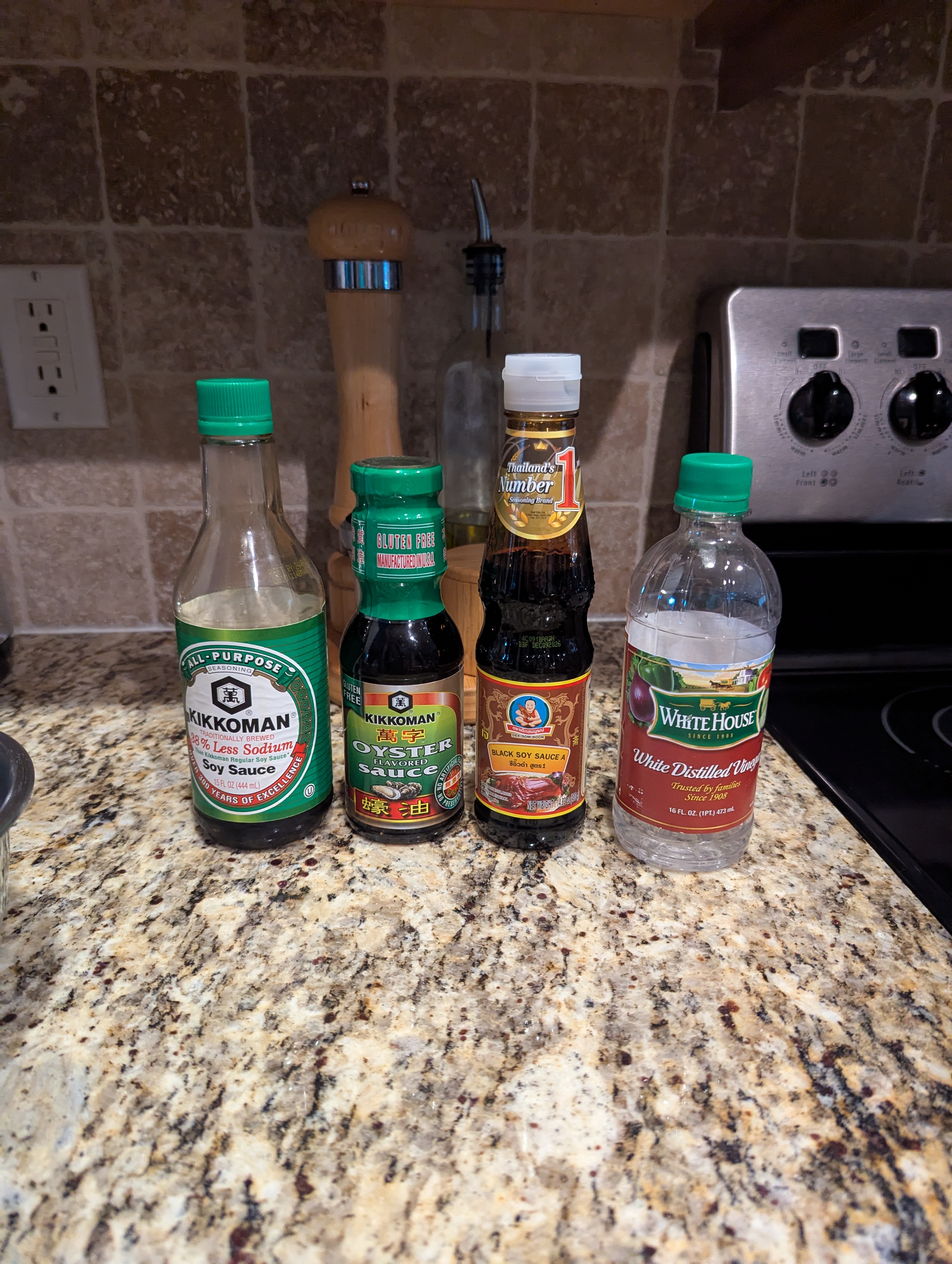 In a small bowl, whisk together dark soy, oyster sauce, light soy, vinegar, and sugar. Set aside. - Prep the Noodles