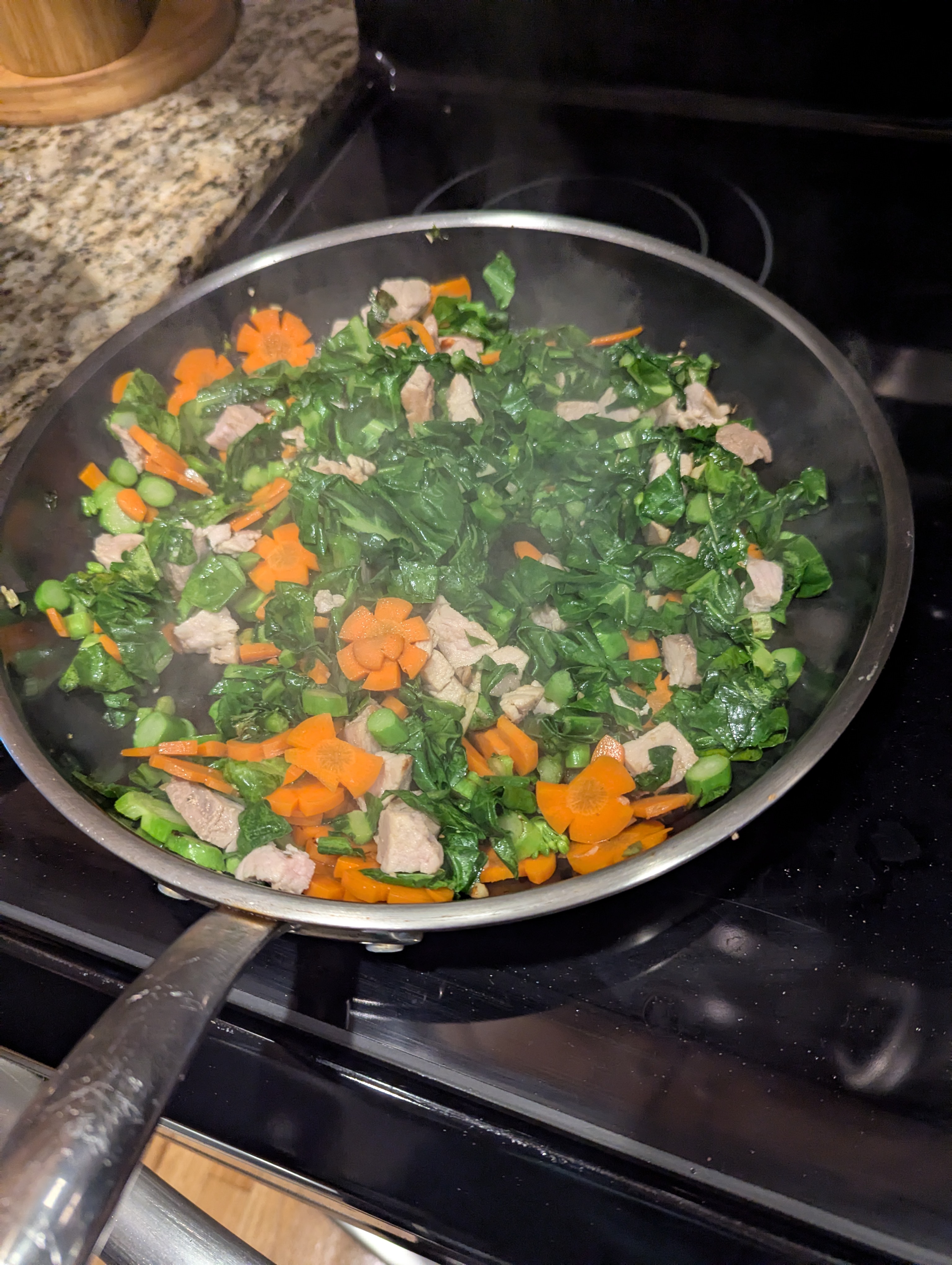 Cook noodles according to package directions. Time it so they finish just as your stir-fry is ready otherwise, they’ll get soggy. - Cook the Veggies & Protein