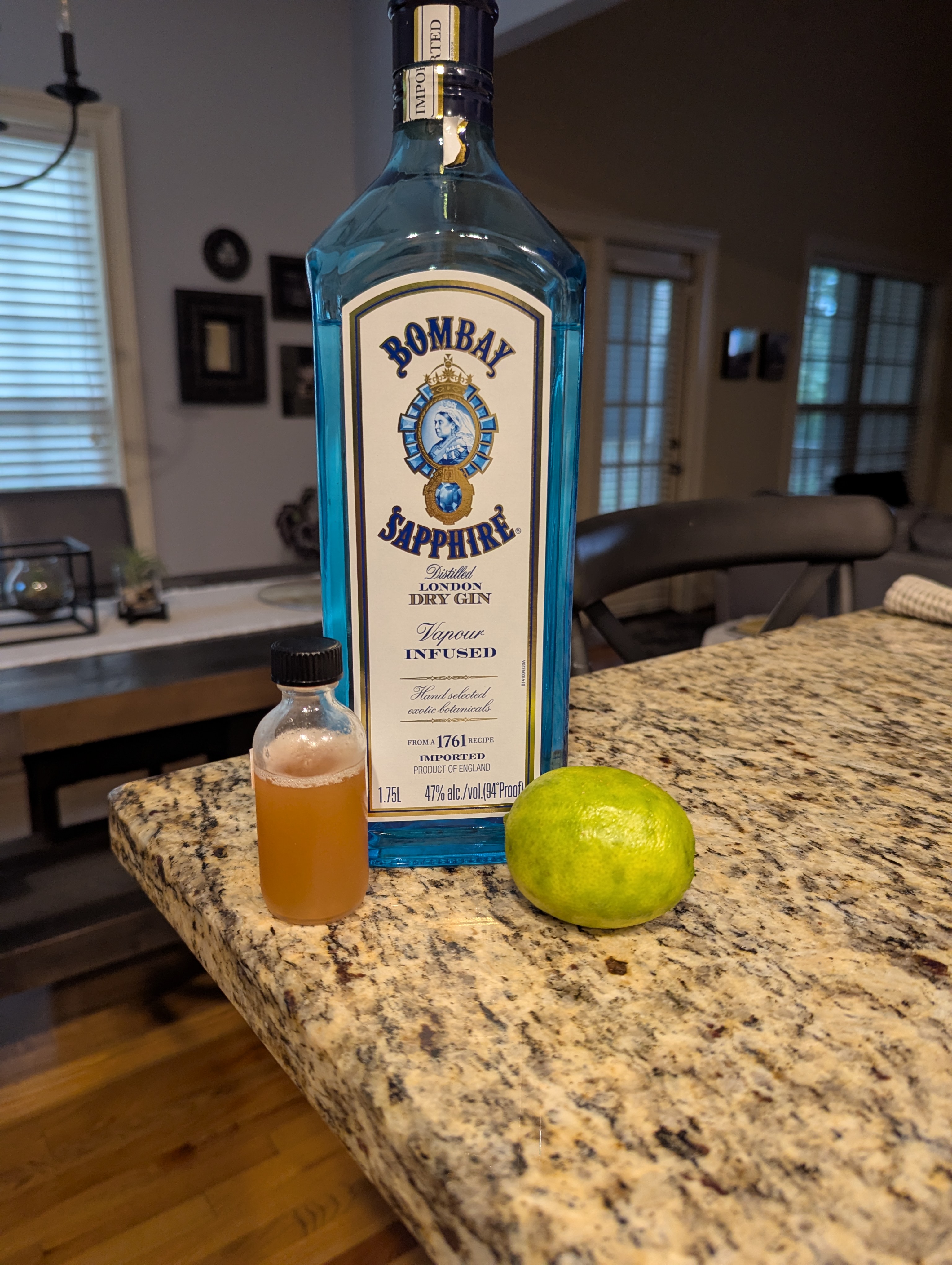 For my take, I used a ginger simple syrup instead of classic simple syrup. Partly because I had it on hand but mostly because the subtle heat and spice work beautifully with gin and lime. The recipe for that syrup is linked below if you want to make it yourself.