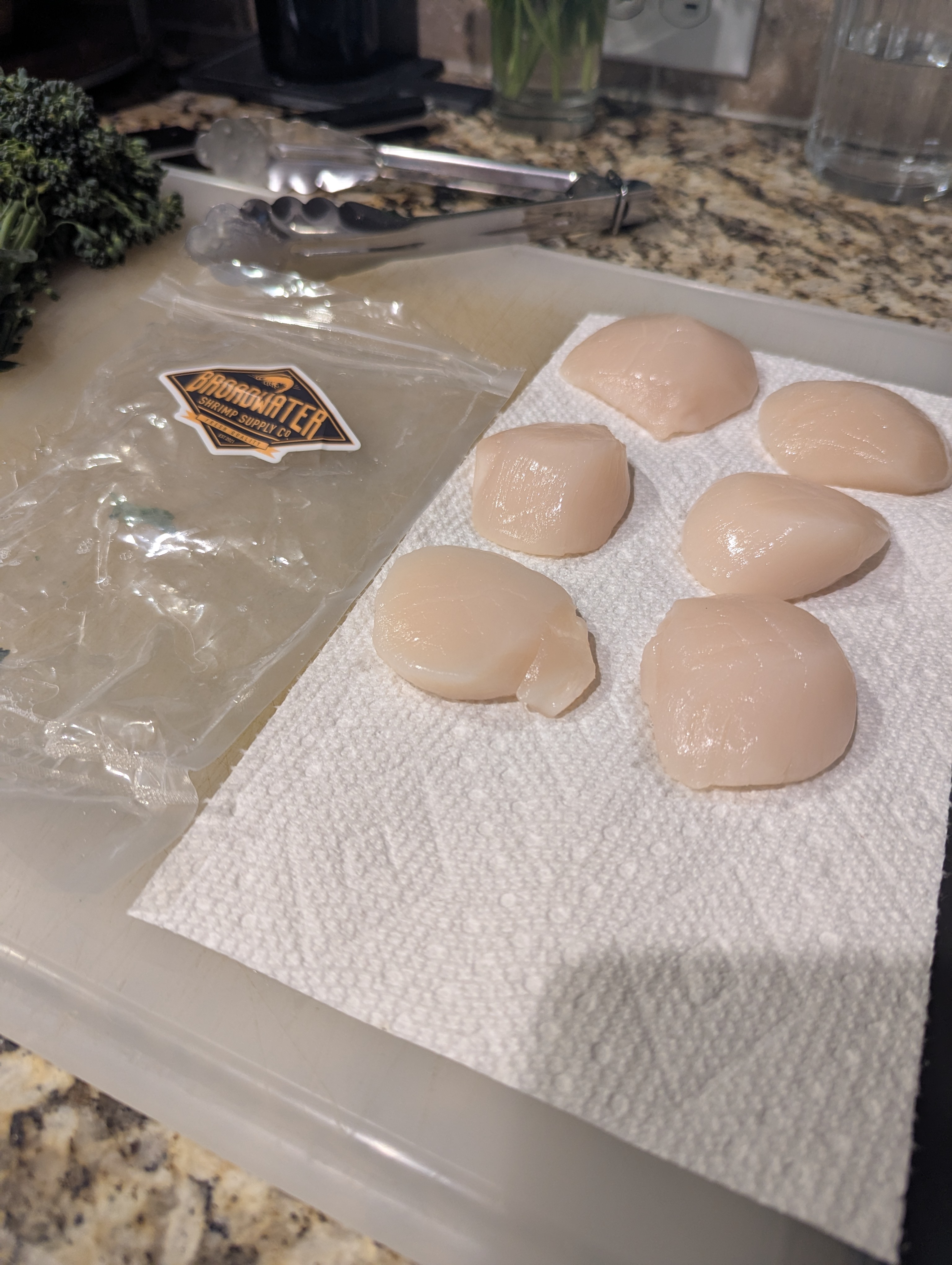 - 8-10 large sea scallops (Broadwater Shrimp Co.)